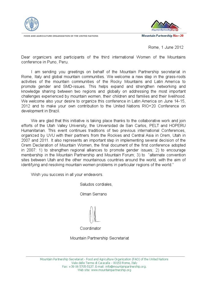- To implement a number of decisions of the Orem Declaration of Mountain Women, the