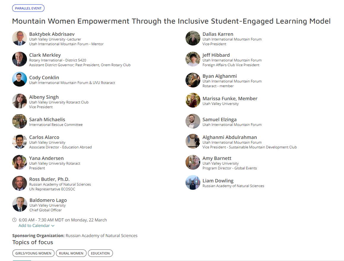 Yana Anderson - UVU Rotaract Contributes to a Parallel Event at CSW65.