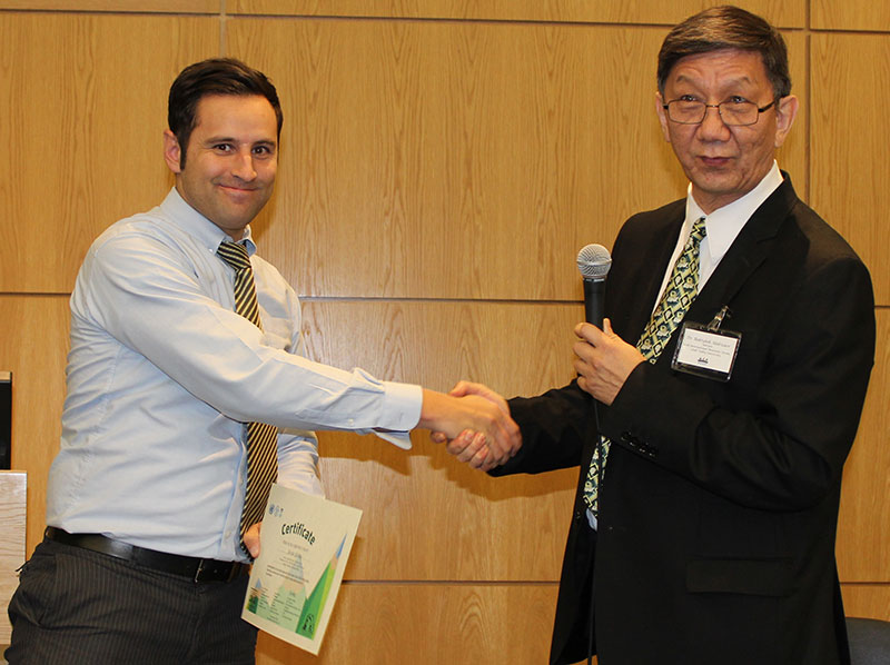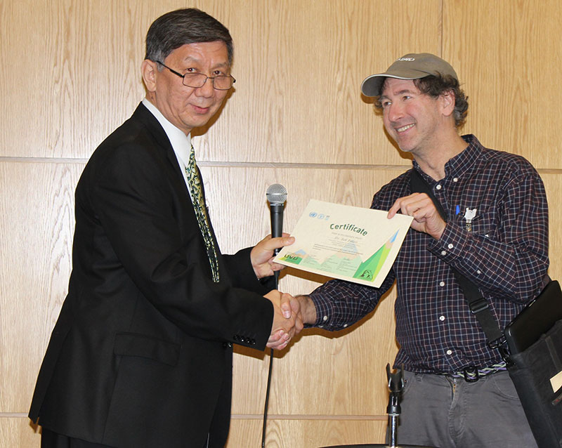 ![]() Presenting Certificate for Contribution to IMD2014 to Dr. Bob Palais, Co-Advisor, UIMF ( R ); |