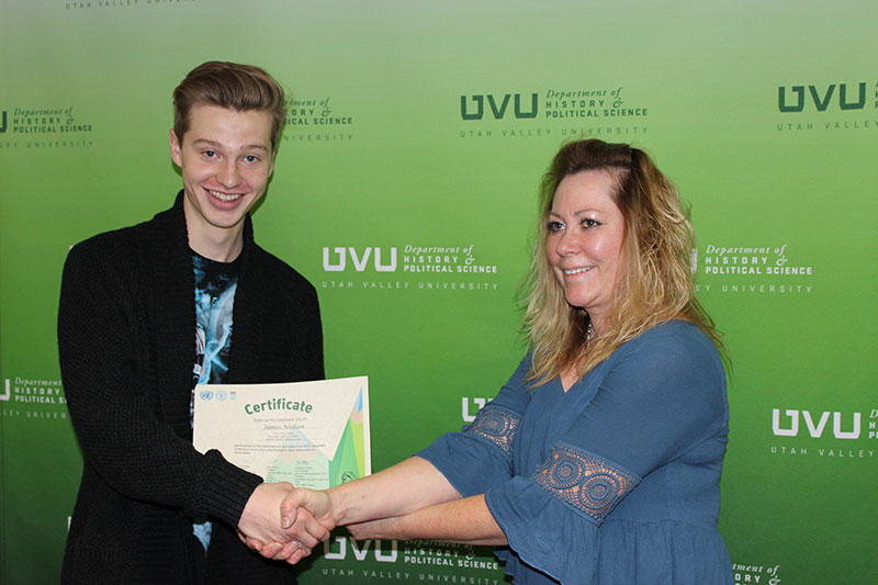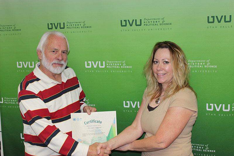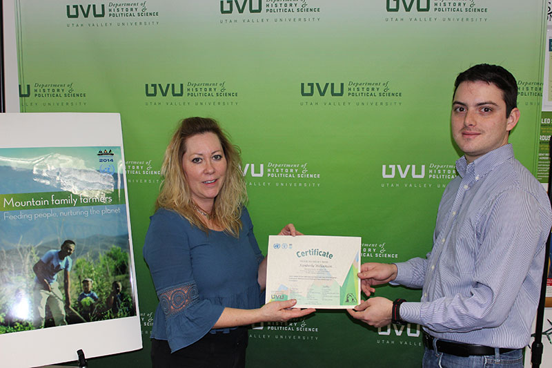 ![]() Presenting Certificate for Contribution to IMD2014 to Lisa Shepherd, Political Science Student, UVU ( L ); |