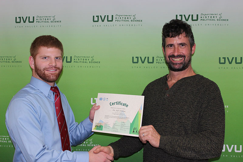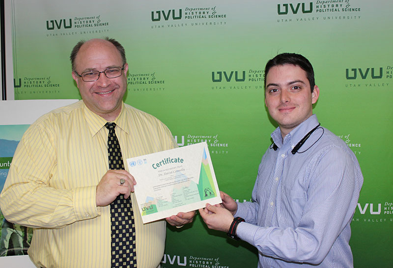 ![]() Presenting Certificate for Contribution to IMD2014 to Dr. David Connelly, Chair, History & Political Science, UVU (L); |