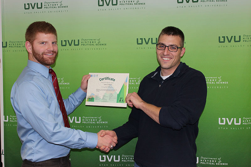 ![]() Presenting Certificate for Contribution to IMD2014 to Odell Miner, History and Political Science, UVU ( L ); |