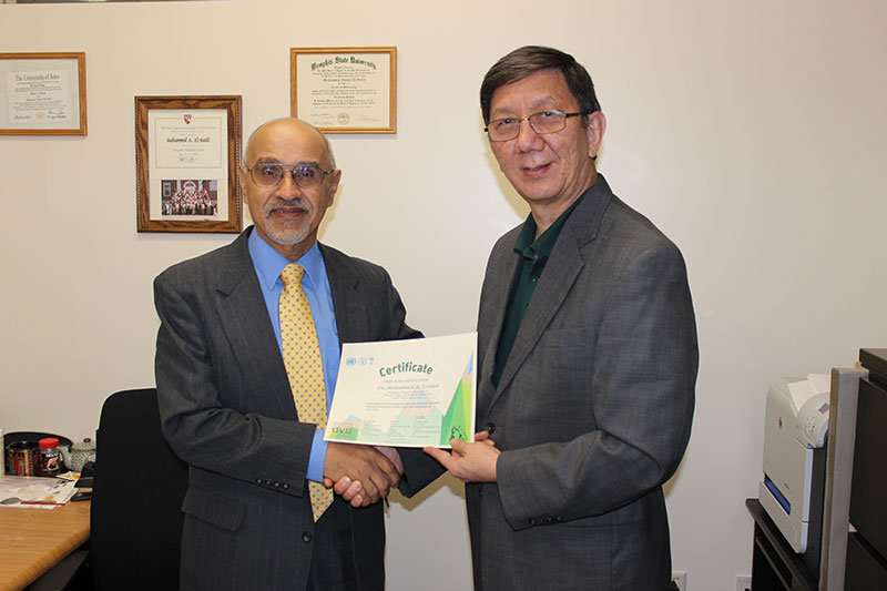 ![]() Presenting Certificate for Contribution to IMD2014 to Dr. Mohammed El-Saidi, Director, Office of Academic Research, UVU ( L ); |