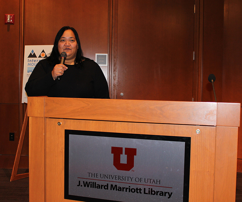 ![]() Kamaile Harris, UIMF Salt Lake City Liaison, addresses the audience; |
